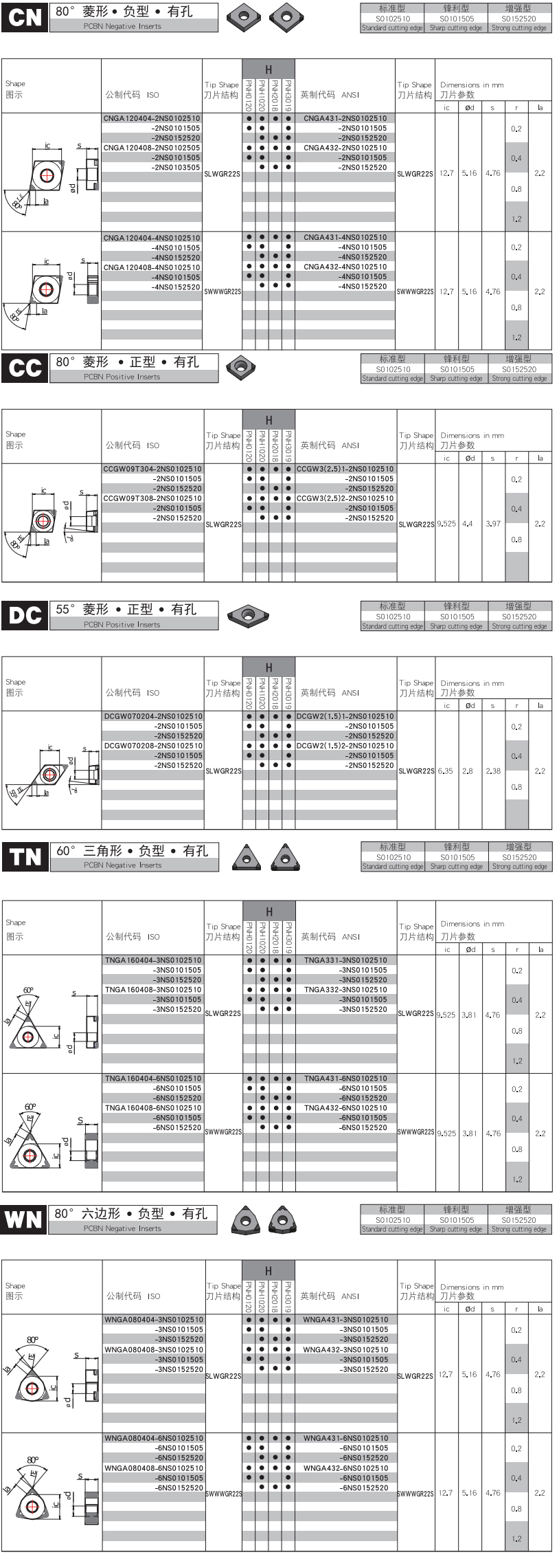 SPECIFICATIONS![]() We select part of information,for details spec for PCBN wiper insert please check and download the catalog. |